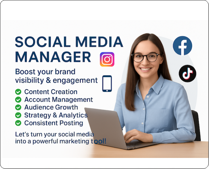 We are a dedicated digital marketing agency offering all-in-one social media management services tailored to help your brand grow authentically and effectively. Whether you’re a small business, influencer, or startup, we’ll manage your social platforms with strategy, creativity, and consistency.